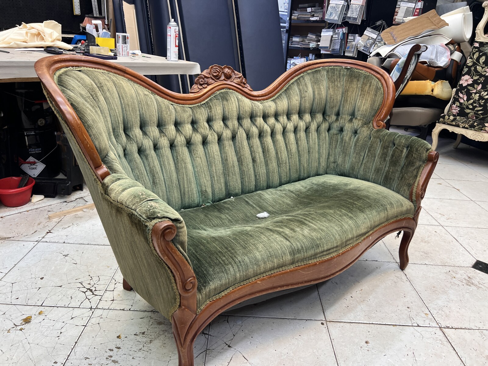 Upholstery: Reupholstering antique chairs, sofas, and settees with period-appropriate fabrics and traditional methods.