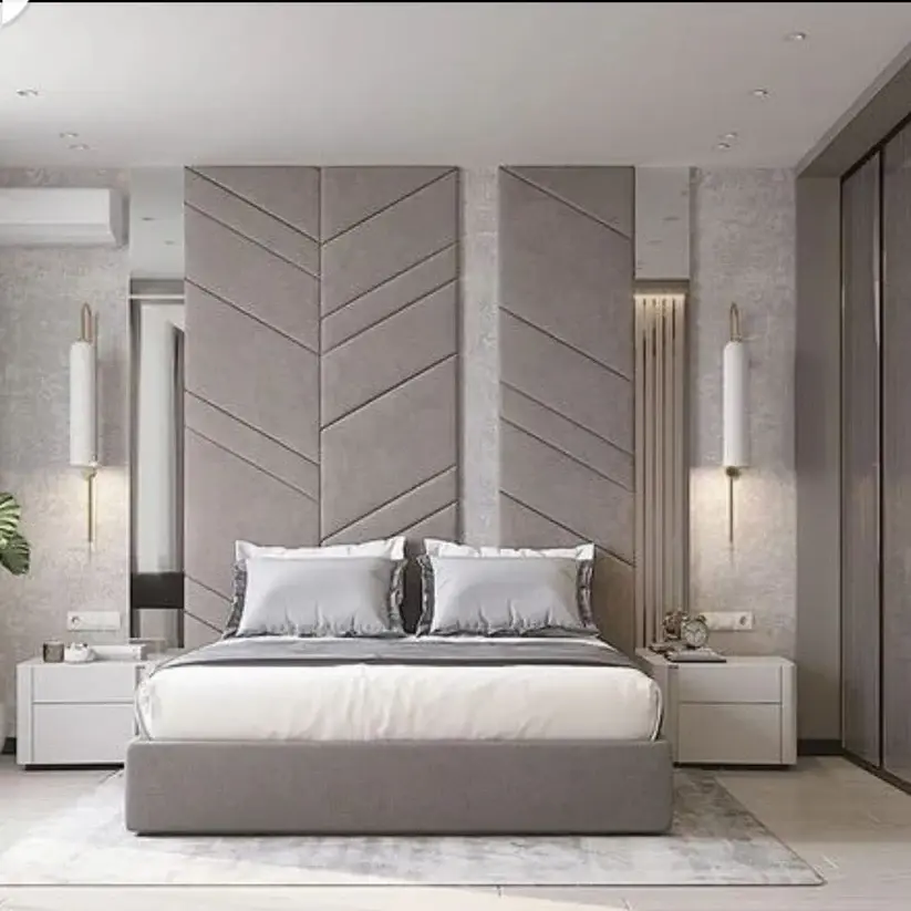 Fabricating upholstered headboards, bed frames, and integrated wall systems for primary suites, guest rooms,