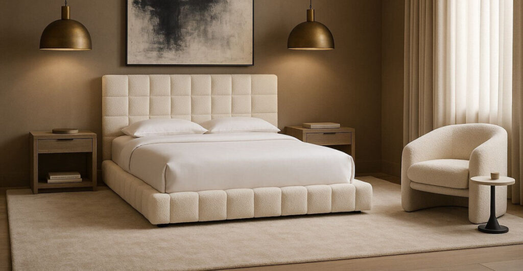 Every platform bed is built on a hardwood or engineered substrate, reinforced with internal bracing and high-density padding. We offer performance fabrics, velvets, linens, leathers, and COM specified by designers and homeowners. Optional detailing includes wood accents, contrast stitching, banding, and integrated lighting alignment.
